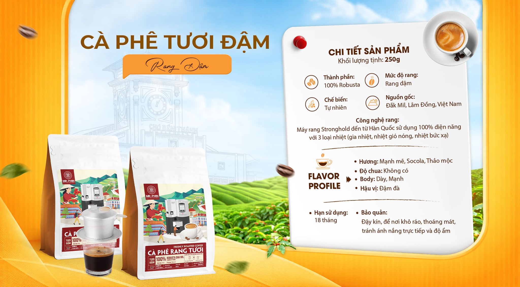 Cà phê rang tươi - Mang đến cho bạn trải nghiệm hương vị đầy đủ từ lúc mới rang, đảm bảo cà tươi, rang mới, chuẩn gu. Sản phẩm phù hợp cho phương pháp pha phin truyền thống và pha máy espresso.