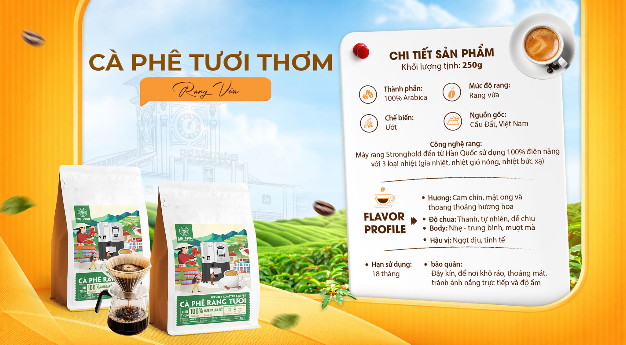 Cà phê rang tươi - Mang đến cho bạn trải nghiệm hương vị đầy đủ từ lúc mới rang, đảm bảo cà tươi, rang mới, chuẩn gu. Sản phẩm phù hợp cho phương pháp pha phin truyền thống và pha máy espresso.